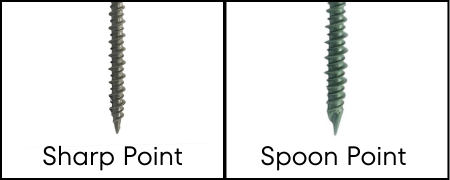For Wood Framing: Use screws with sharp point or spoon point. These are designed to start quickly in wood without splitting it.