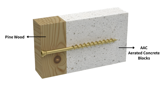 For applications that require a secure connection between pine wood and AAC blocks, this screw offers an effective combination of quick driving, stable grip, and a clean finished appearance.